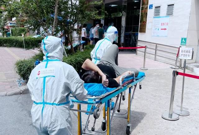 “太累了,我能不能在地上坐一下?”这是张磊医生在顺利转运一名患者到医院,在发热门诊跟护士交接时说的一句话,因怕防护服污染座椅,他不敢坐在椅子上。6月20日那天广州最高温度38℃,医疗队接到任务,要转运一名中风患者,持续发热不退,病情严重,急需送医治疗。为减少在高风险区活动人员,医疗队没有配备担架员,此刻他们既是医生护士,也是临时担架员。患者家住6楼没有电梯,张磊和护士抬着担架迅速往楼上爬,上楼后身穿防护服的他们已是气喘吁吁、大汗淋漓,但是病人的病情不能耽误,他们继续迈着艰难的步伐转运患者下楼,张磊抢先走在前头,担架的重量几乎全压在了他身上,汗水在防护服里流淌。好不容易到楼下,张磊已是大口喘气,双腿颤抖,来不及歇息,他迅速为患者进行急救工作。
