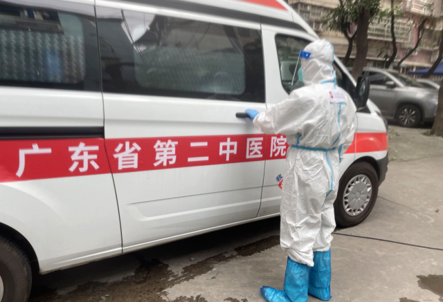 在抗疫这个无硝烟的战场,除了医护人员,还有许许多多坚守岗位、同心抗疫的人员,120救护车司机就是其中一员。曾经在2008年汶川地震救灾中做过转运工作的资深司机尹华雄同志,这次又主动报名参加医疗队支援荔湾,他的妻子也是一名共产党员,十分支持他的决定。转运通知就是冲锋号,在十多天的转运工作中,尹华雄、尹强两名司机为责任和使命,及时出发“战疫”,他们肩负着疑似病例和密切接触者的转运重任,每次执行完转运任务返回驻点后,顾不上喝水、吃饭,立即对车辆进行消毒,并反复检查确保救护车处于正常工作状态,按要求做好自身防护,与医护人员齐心协力筑牢“防疫墙”。“我们谈不上什么英雄,只想尽一己之力,为疫情防控做点贡献,面对疫情,我们从来没有想过退缩两字。”尹华雄说。