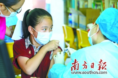珠海市香洲区第一小学二年级学生接种新冠病毒疫苗。南方日报记者 钱文攀 摄